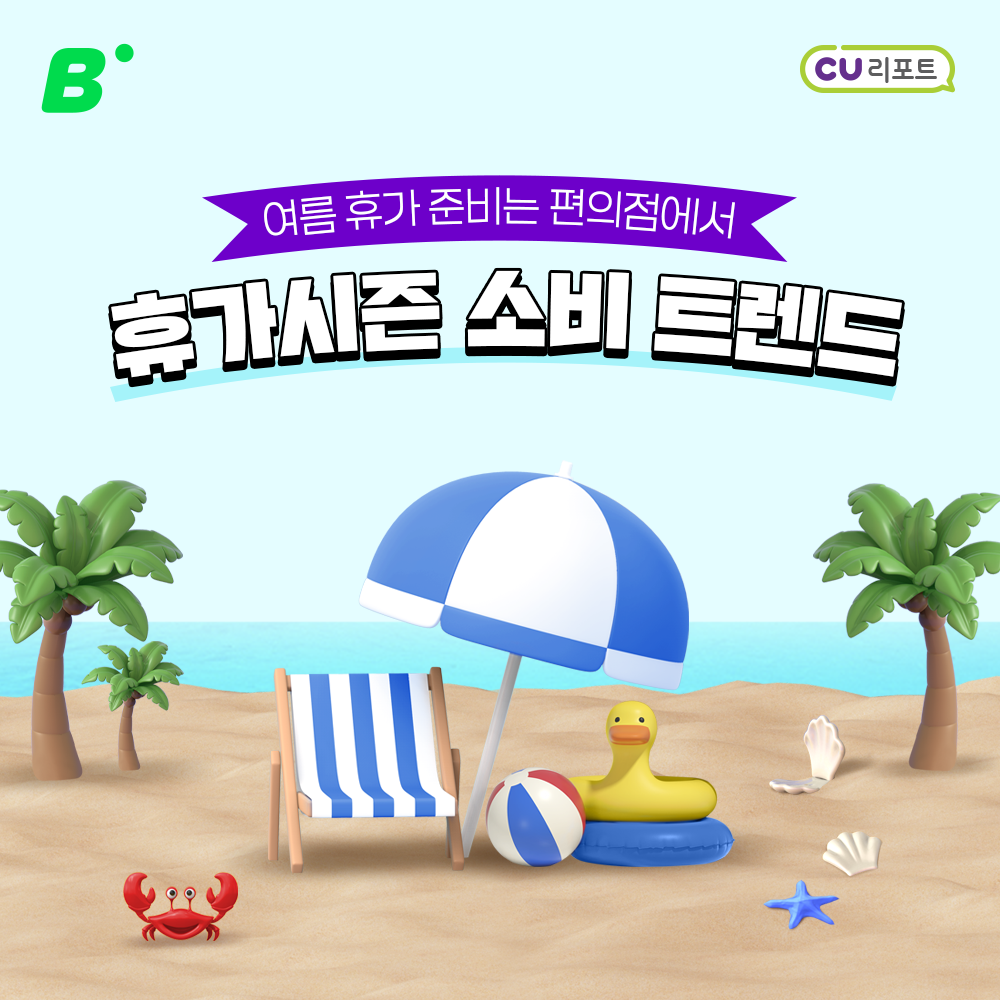 장마는 어디 가고 때이른 무더위가 찾아왔다! 조금 더 빨라진 휴가철 시계, 눈치게임에서 승리하고 싶은 당신을 위한 CU 빅데이터 리포트, 여름철 휴가 필수템의 세계로 여러분을 초대합니다.