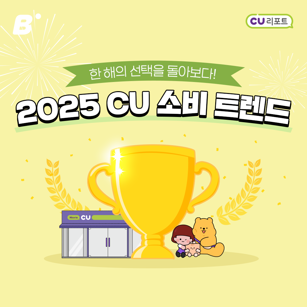 2025년, CU에서는 어떤 상품이 가장 뜨거웠을까요? 가장 많이 팔린 히트템부터 취향 키워드, 콜라보 열풍까지. 올 한해 CU를 달군 인기 상품들을 한눈에 정리해봤습니다. CU 빅데이터로 보는 올 한 해 소비 트렌드, 지금 바로 확인해보세요!